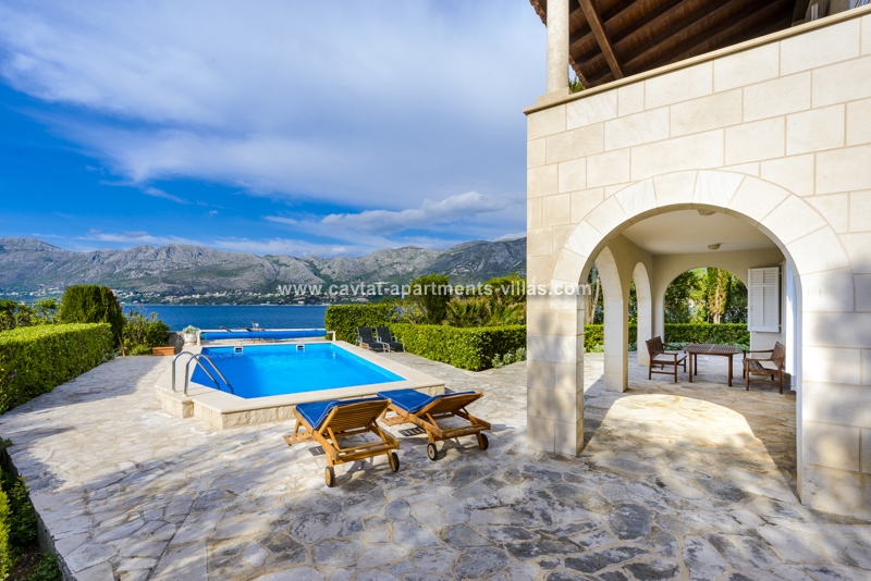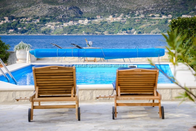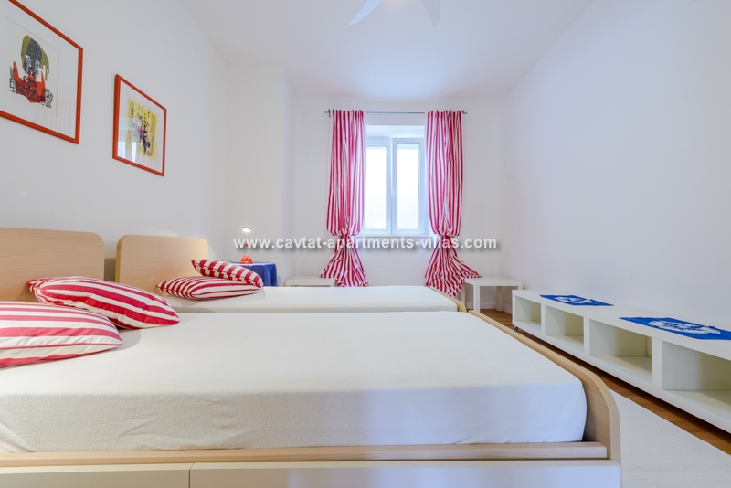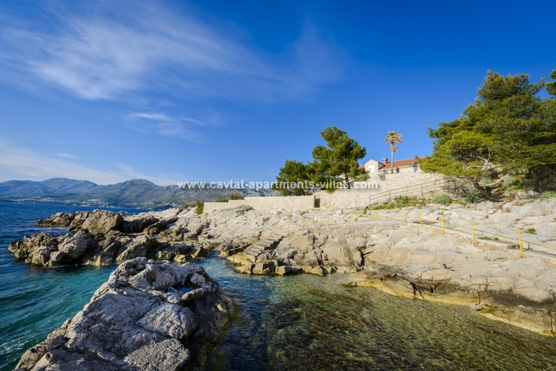 These apartments are a part of a family owned villa with a pool situated on a unique secluded part of Cavtat in the middle of the half island Rat, right next to one of the loveliest beach in Cavtat "Kamen mali" which you can reach from the property with ease. The villa is located right next to the sea and surrounded by the owners gardens. Do the villa is in a secluded area and only surrounded by sea and nature, the old town Cavtat is located only 5 minutes of walk from there via lovely mostly flat pedestrian street following the sea.