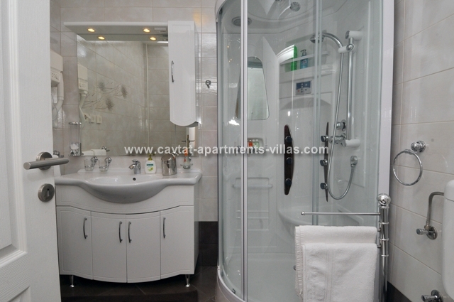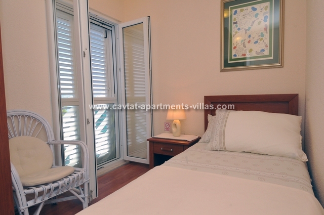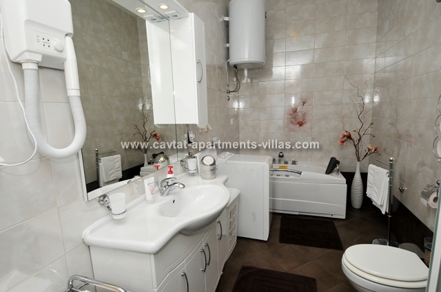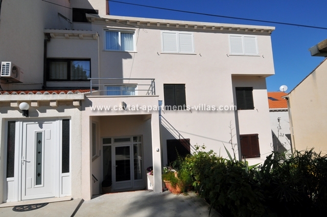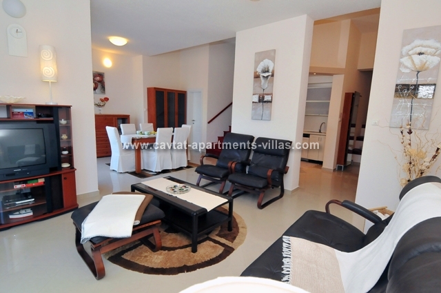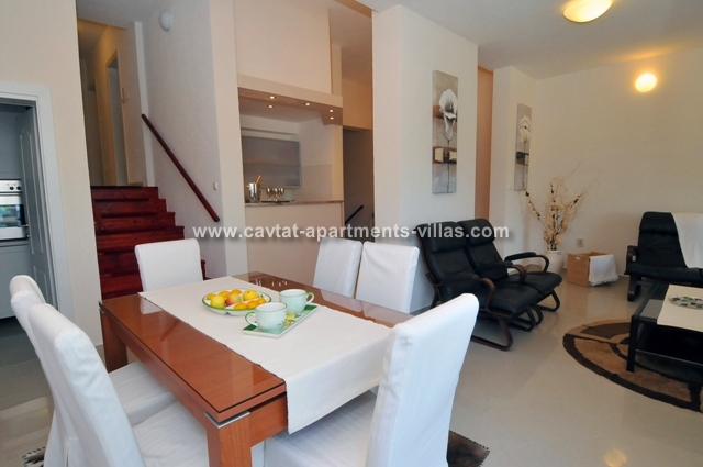 The apartment is divided over two levels, the second and third floor. The apartment entrance is via internal staircase from where you get into a small lobby. Further on, there is a partially separated and fully equipped kitchen, a trendy diner area and a stylish and comfortable lounge area with leather furniture. The lounge and diner area have access into a terrace with views over the sea and old town, great for outdoor dining and chilling out. Passing the wooden stairs you will get into the apartment upper level where on the left side is one single and one double bedroom. The first door on the right is a shower room equipped with a massage cubicle, while the second one leads into a beautiful double bedroom with a specious en-suite bathroom equipped with a shower, a single jacuzzi bath and a washing machine. The apartment is additionally equipped with air conditioning, a dishwasher, a sat TV and a DVD set. Private garage and parking are provided. The discrete owners also live in the house but in the separate private property beneath. The apartment provide an ideal base from which to enjoy the city of Cavtat and it would suit a family or friends looking for a peaceful location yet be within easy access of the nearby areas of interest.
