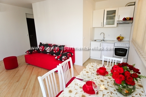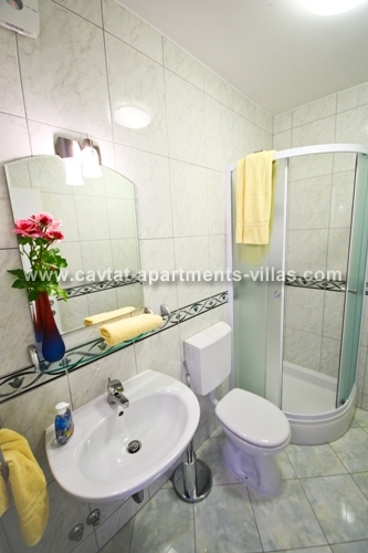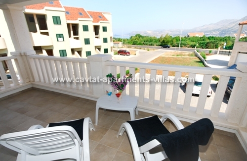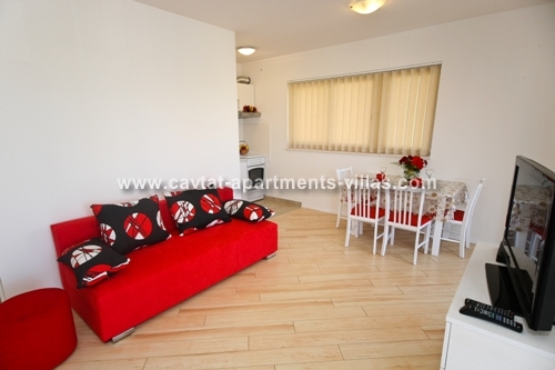 The apartment consists of a separate double bedroom, a shower rooms, a modern fitted kitchen/dining/living area with a sofa that can be use as extra sleeping place for one adult or two children and a spacious terrace with sea view. Fully air conditioned and equipped with a sat TV and free WiFI this comfy apartment provides all for relaxing holiday. On the ground floor there is a shared pool and a sunbathing area. There are only two apartments to let within this property. This apartment would suit those looking to holiday in a relaxing retreat yet be within easy access of Cavtat and the surrounding area. This apartment is located within the same property as CT-A52  |