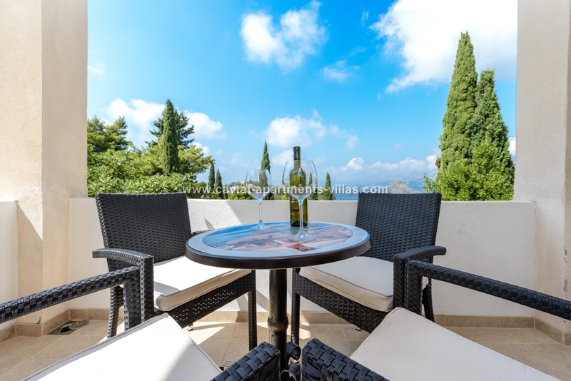 Situated on a slope within walking distance to the old town, restaurants and beaches this 1-bedroom apartment overlooking the sea and mountains offers everything you need for a comfortable holiday.
