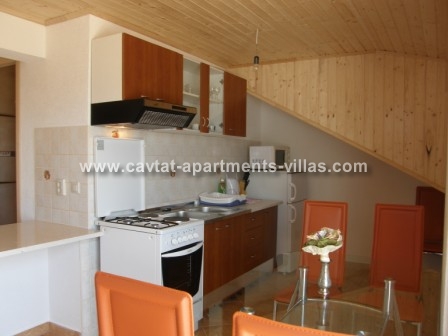The apartment is situated on the top floor (4th level) of family run property and consists of two bedrooms (one bedroom has a double bed, the other bedroom has a double and a single bed), a shower room, a fully equipped kitchen/diner area with specious living room which is equipped with two sofa beds suitable for two extra people. Further there is a terrace with outdoor furniture offering fabulous views over the whole surrounding area and Cavtat old town. The apartment is air conditioned and features sat TV and a washing machine. This type of accommodation is ideal for a family or group of friends wishing to enjoy in one of the most stunning panoramic views of Dubrovnik riviera.