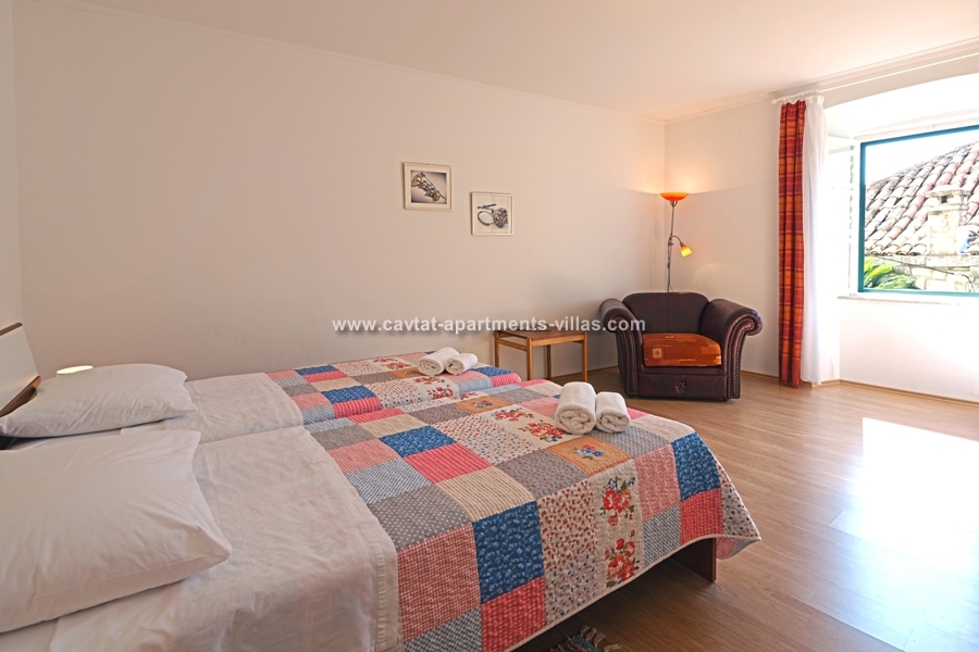 Number of Bedrooms: 2 This tastefully furnished 2-bedroom apartment is situated in the heart of Old town Cavtat just about 30 steps from the main promenade. This spacious apartment is located on the top floor and has a separate entrance.
