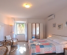 The apartment consists of 2 separate large bedrooms, of which one has a double bed and the other one has two twin beds, a shower room, an open plan kitchen/diner/lounge area and a good size terrace offering sea/harbor views with table and five chairs suitable for outdoor dining. There is possibility to use sofa in the lounge as an extra sleeping place for one person. The apartment is very comfortable and fully equipped, with air conditioning, a Sat TV and a free WiFi internet. This apartment would suit a family or two couples looking to stay in a quiet area of Old town and to be very close to beaches and restaurants. This apartment would not suit for those having walking difficulties.
