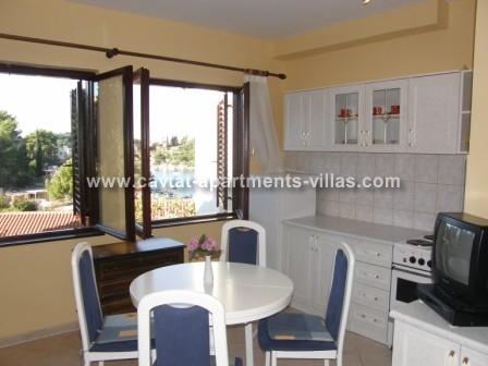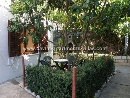 The apartment has a separate entrance and is approached from the seafront parking area below and up steps into a private patio with outdoor eating facilities for four people and BBQ. Lemon trees shade making patio as an ideal spot for cool down in hot summer months. Main door lead into a lounge with a kitchen/diner area offering nice views of the Tiha Bay and Cavtat's peninsula. The lounge has a pull-out sofa which can be used as additional sleeping place for one person or two children (up to maximum age 12 years). Further there is a double bedroom with matrimonial bed and a shower room. In view of the apartment's location, it may not suit those experiencing walking difficulties.