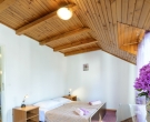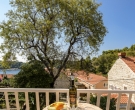 The house is easily approached from the promenade via short slightly up hill pedestrian street with no steps. Getting to the house is through the main entrance gate with just a few steps into spacious terrace from where you can enter the ground floor or take a steps to the attic apartment. The ground floor apartment consists of two double bedrooms of which one has an en-suite shower room, a triple bedroom, a separate kitchen/diner area and an additional shower room. The first floor apartment consists of 3 double bedroom of which two have an en-suite shower room, a kitchen/diner area, an additional shower room and a balcony with sea view. Both apartments have possibility of an extra sleeping place in one of double bedrooms and are equipped with air conditioning in diner/kitchen area, Sat TV and Free WiFi internet. The most attractive part of the house is a huge terrace where there is a sunny and covered part with outdoor dining facilities. As the terrace is very spacious it can be divided into two parts. This house would suit a family or a group of friends looking to stay somewhere peaceful and yet be within easy reach of the town and its attractions. It offers guests a wonderful opportunity to relax and has a direct access to a pretty pebble beach with complete offer located less then 100 meters away.