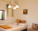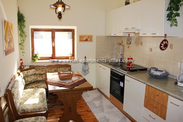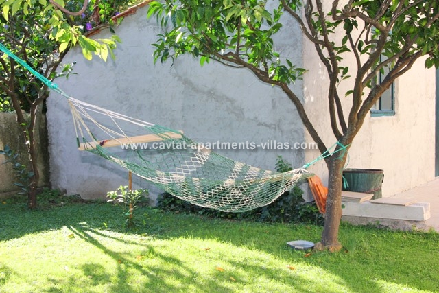 Guests enter the property from the road into a parking area from which a short flight of steps leads down to the ground floor where the apartment is located. The main entrance to the apartment leads into a nice hallway. Further there are two separate bedrooms (one with a double bed and the other one with a double bed and a sofa bed) and a kitchen/diner area. There is a shower room at the end of the hallway. The garden and patio area with outdoor dining , BBQ and hammock are located just outside the main entrance to apartment. The apartment is air conditioned and additionally equipped with central heating and WiFi internet. This apartment would suit a family with small children or teenagers or group of friends who wish to relax on nearby beaches.