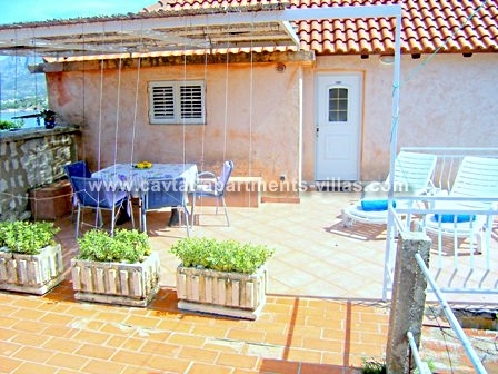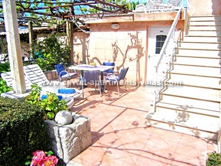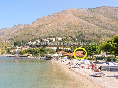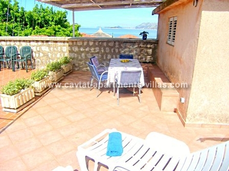 There are two self-catering 1-bedroom apartments within the property that can be rented separately or together. Each apartment has a separate entrance, a bedroom with double bed and sofa bed), a kitchen/diner area, a partially separated lounge area with a sofa bed (which can be used a sleeping place for two extra persons), a shower room, a toilette and a terrace with garden furniture suitable for outdoor dining and sun beds. One apartment is located on the ground floor and the other one of the top floor. The ground floor apartment has an extra balcony and would be suitable for those with mobility difficulties as there are no steps to access the apartment. Both apartments are air conditioned and equipped with Sat TV, free WiFi and hairdryer. There is a beach bar in next door house where on peak summer weekends gets very busy. The nearest restaurant is just 20m away. Albatros pier (boats operating to Dubrovnik hourly) is located on the beach just a few meters of the property. The apartments would suit a couple or a family wishing to stay very close to the main pebble beach of Cavtat.
