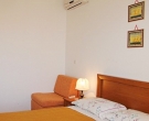 This air conditioned room is located on the 1st floor and consist of a double bed with a single sofa bed which can be used as extra sleeping place for one person, a shower room (outside the room on the hallway for private use of this room) and a private balcony offering sea/harbor view. Sat TV and WiFi internet are provided. There is a small kitchen (with fridge) on the ground floor which two rooms to let on the first floor can use. There is also a bigger shared terrace with outdoor dining facilities available on the ground floor beside the kitchen. This room would be suitable for a couple wishing to stay in a quiet area close to restaurants and beaches.