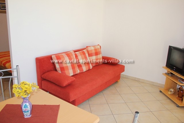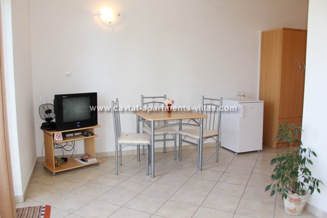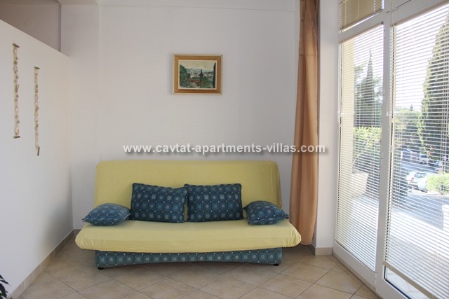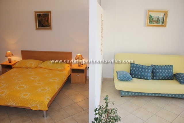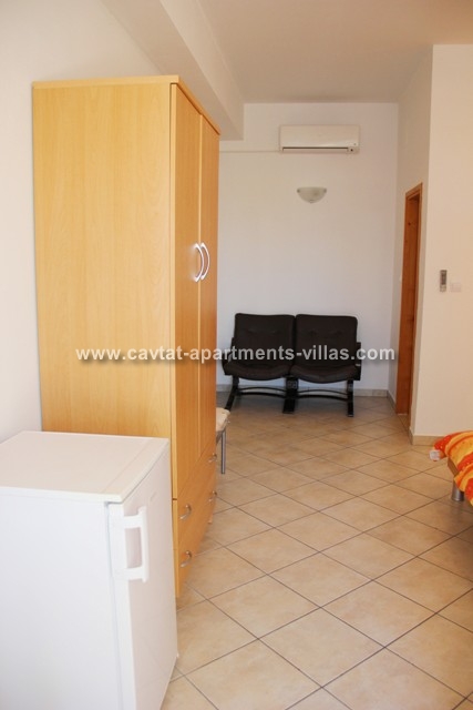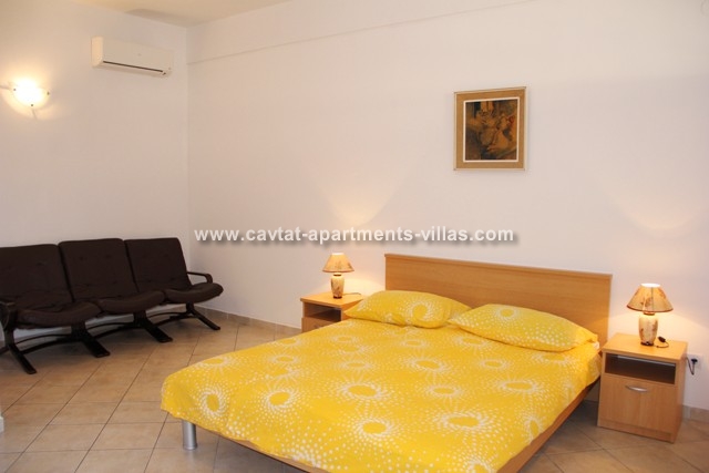 Located on the ground-floor this large air conditioned room has a double bed, a dining area with a fridge, a kettle, a private shower room and a lounge area with a sofa bed that can be used as an extra sleeping place for one person and a TV. There is private parking in front of the house and free WiFi is provided. There are three rooms to let on the ground floor, and all have separate entrance. This reasonably priced accommodation enjoys ideal location, as it is situated just two minutes' walk to Cavtat Old Town, beaches, grocery shop, restaurants, bars, banks and bus/taxi boat station. It is perfect for couples or a small family looking to stay very close to the town with everything they need in a short walking distance. The accommodation accepts stays with small pets as well at a surcharge of 10 euro per night. These rooms are located within the same property as studio apartments CT-A101  | CT-A100  |