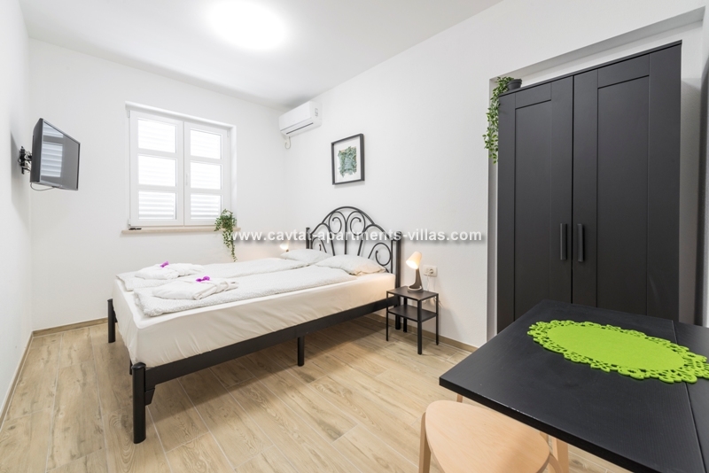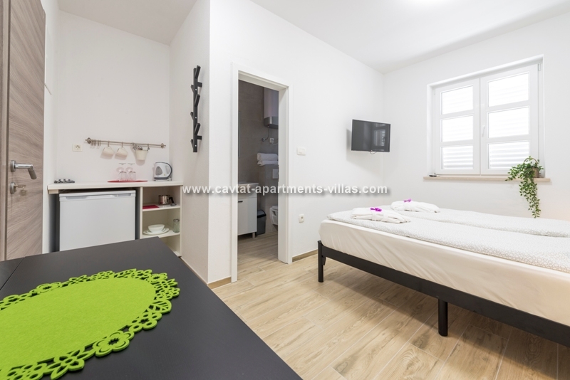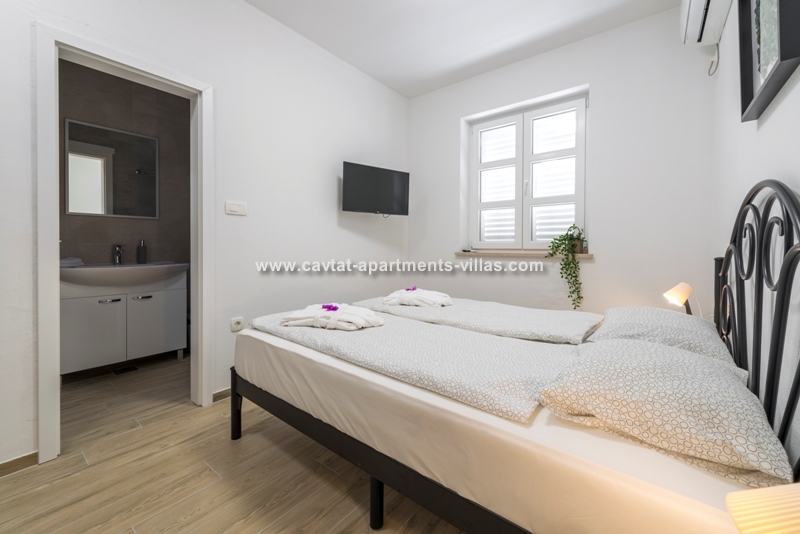 This newly build modern villa with pool is located in Prijeko street, the main old town Cavtat street situated just above the main promenade. From this superb location you can reach the main promenade with bars and restaurants in just 1-2 minute walk, the nearest beach, shops and public transportation in 3-4 minutes of walk. The villa features a good sized outdoor pool and shower that can be used by all the guests of the villa, pool towels, free WiFi and Cable TV. This room would be perfect for couples or a small family looking to stay central and have access to a pool. For larger families we can also offer combinations with 4 more apartments and 4 more rooms located inside the villa. CT-R18  | CT-A122  | CT-A123  | CT-A124  | CT-A125  | CT-A126  | CT-R19  |