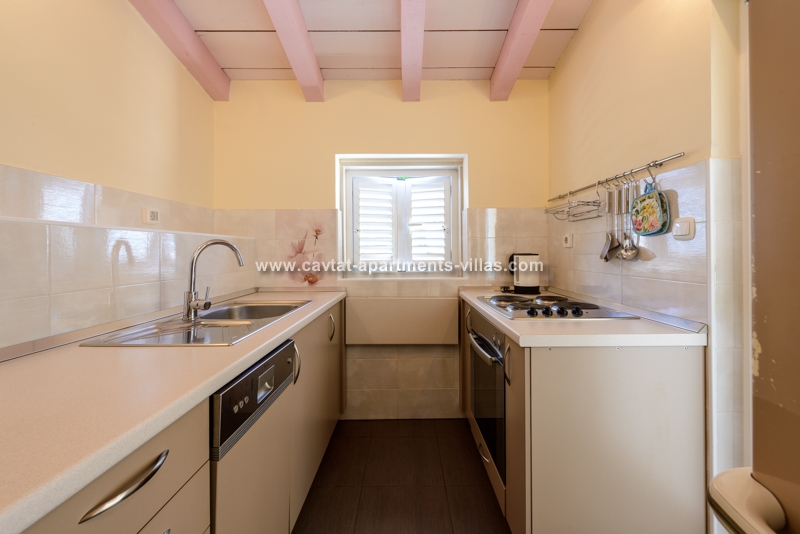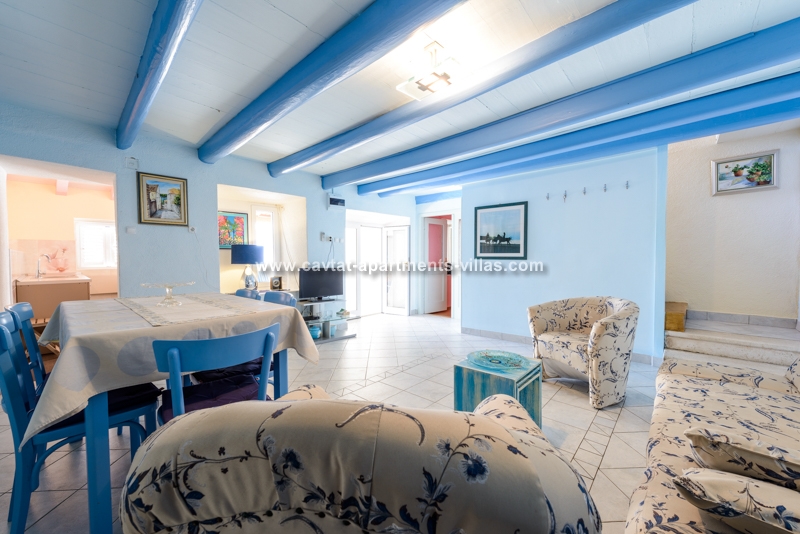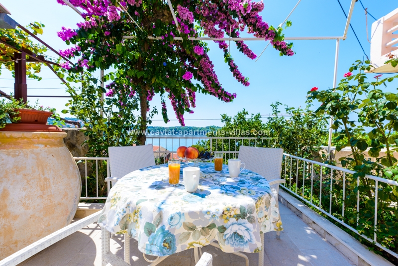 This more then 100 years old house is newly renovated and offers modern accommodation with lovely sea views from its terraces. The beaches are 100m from the property. The villa is set over three floors on 200 sqm and has approach by steps from the below parking area which is just about 50m away. The ground floor consists of an open plan lounge/diner area from which there is a door into a brand new and fully equipped kitchen. On this floor there is also a twin bedroom. On the first floor there are two double bedrooms, two shower rooms and a breathtaking sea view terrace with comfortable garden furniture (large table, chairs and sunbeds). There is also one spacious double air conditioned bedroom in the loft. The villa is about 20 minutes walk away from the old town. The whole house is air conditioned and equipped with sat TV and dishwasher. Microwave is available upon request, as well as baby cot and high chair. WiFi is available and free of charge. This villa would suit a family or friends looking to stay near the beaches and in vicinity of the most beautiful town of Adriatic. The villa offers a possibility of connection with neighbouring villa for a group of 10-13 people by large central patio area. Please see the neighbouring villa details @ Villa CT-V02  |