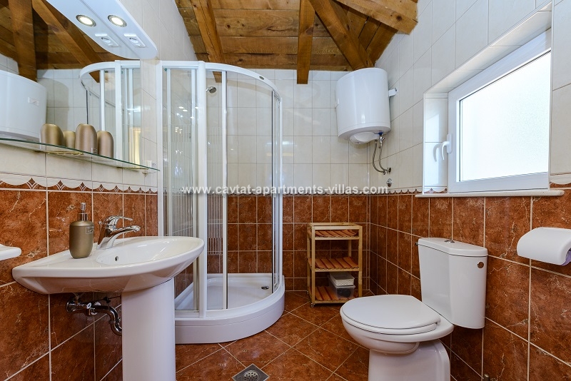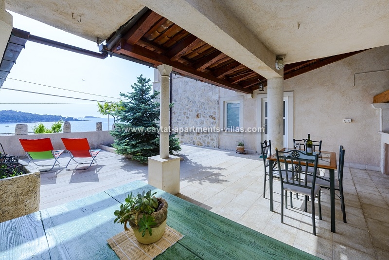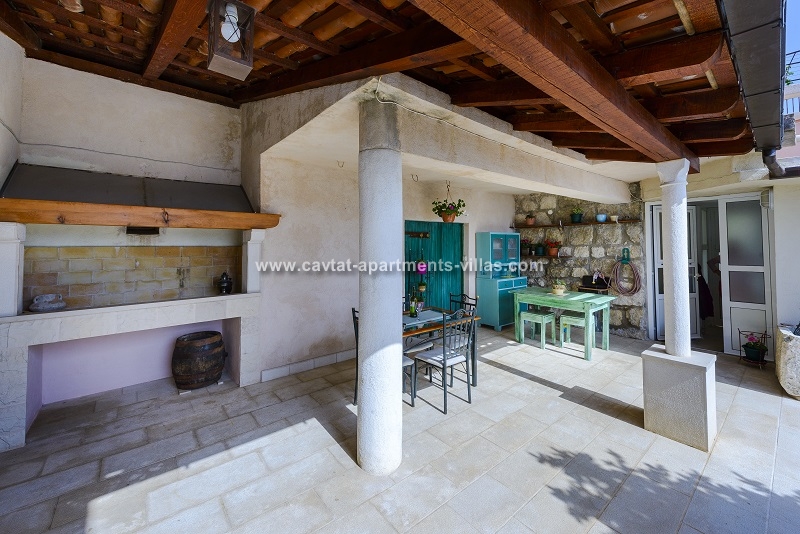 The Villa is set over two floors on 150 square meters and has approach from the below parking area which is just 50 m away. The ground floor consists of a spacious terrace, an open plan kitchen/diner area, a lounge area, a separate shower room and an outdoor BBQ area. On the first floor there are two double bedrooms with a separate shower room. Also, one of the rooms has covered sea view balcony. The villa is fully air conditioned and equipped with sat TV, washing machine, dishwasher, stove, oven and toaster. Microwave is available upon request, as well as baby cot and high chair. Villa Eli is situated in an elevated position on the edge of the magical seaside town of Cavtat. Also the Villa has an advantage of being located above the Epidaurus Hotel and guests are usually able to use hotel facilities for a small fee. Free WiFi is provided in the villa. This villa would suit a family, two couples or friends looking to stay close to restaurants and beaches. The villa offers a possibility of connection with neighboring house CT-V01 for a group of 12-16 people.