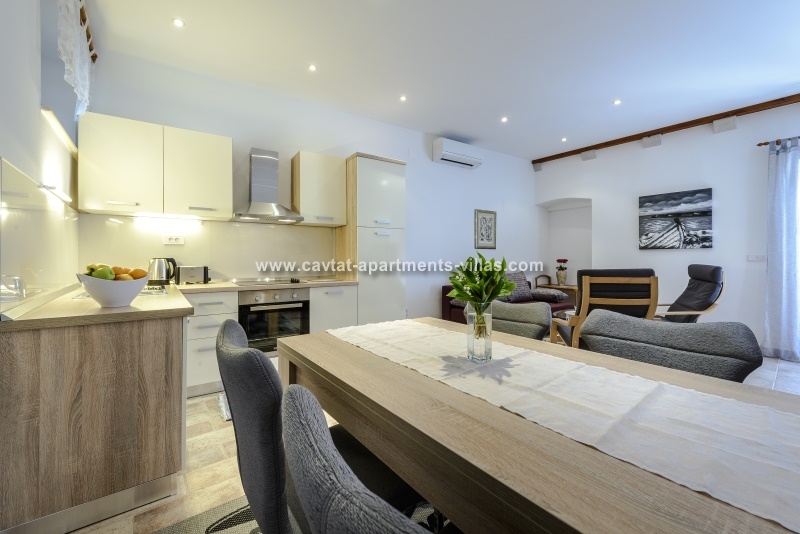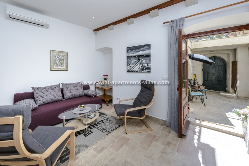 Situated on the ground floor, this amazing holiday let is a part of a privately owned villa and consists of a double bedroom, a shower room, a fully equipped kitchen/diner/lounge area with a sofa which can be used as an extra sleeping area for one person. A door from the kitchen/diner/lounge leads out onto a lovely courtyard (korta) with outdoor furniture table and two chairs. The apartment is air conditioned and features a sat TV and Free WiFi. This apartment is suitable for those with walking difficulties as there is just 1 step from the flat area of Cavtat's main palm-lined promenade. For those traveling by car there is a private parking owned by the property owners outside of the old town and about 10 minutes of walk from the apartment where you can park your car free of charge. The property also offers free airport transfers to and from the apartments street.