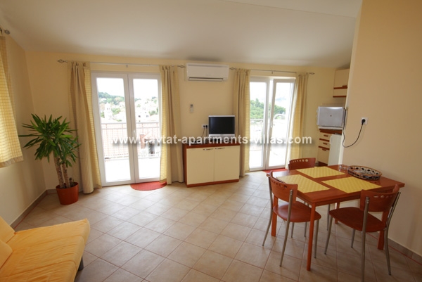 This apartment is situated on the top floor and consists of a double bedroom, a shower room, a kitchen equipped with a kettle and microwave, a diner/lounge area. Apartment has a balcony/terrace equipped with garden furniture overlooking the old town with harbor and lovely Tiha bay. There are 4 apartments in this house of which two are located on the second and two on the top floor. This accommodation would suit a couple wishing to spend their holiday in ancient and quiet Dalmatian town. This apartment is located in the same property as CT-A68 (2 units)  |