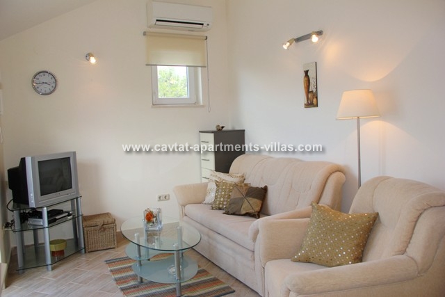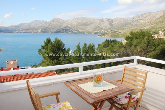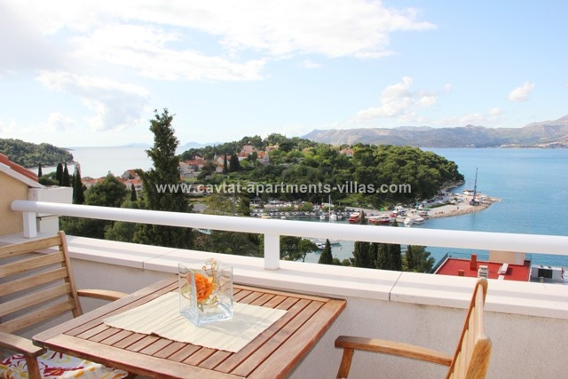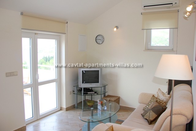 With very modern furnishing and fittings this is an ideal holiday retreat. The apartment consists of a double bedroom, a shower room and a kitchen/diner area with partially separated lounge area with pull out sofa bed which can be used as extra sleeping place for one person. The most interesting part of apartment is a south-north facing balcony overlooking Cavtat old town and Zupa bay, offering one of the most beautiful views. The apartment features an air conditioning and a sat TV. This apartment would suit a couple or a small family wishing to enjoy stunning views within walking distance from Old town, restaurants and beaches. There are two 1-bedroom apartments on the top floor. These two apartments are located within the same house directly above 2-bedroom apartment CT-A21  |