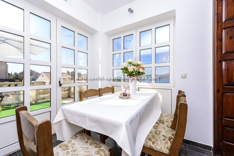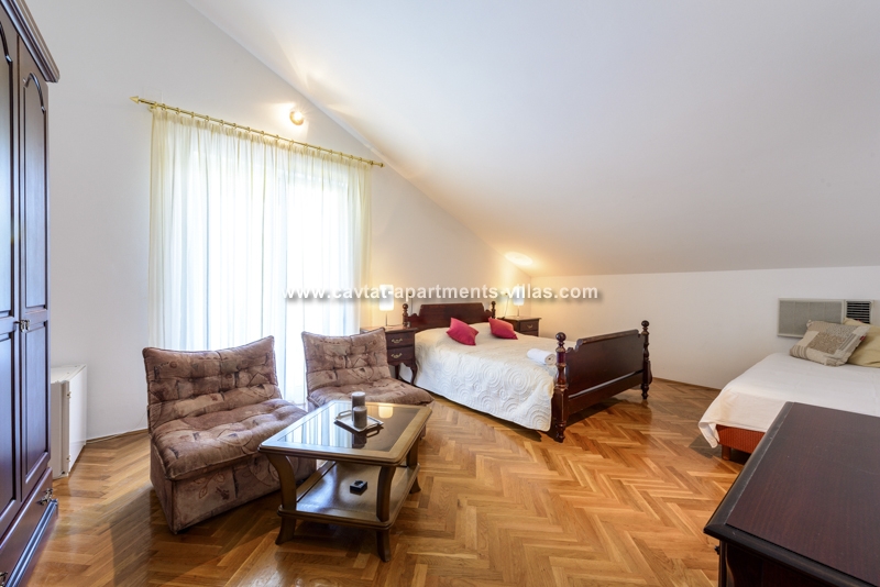 This apartment occupies the whole top floor of a spacious and private villa, located on a small slope above the picturesque seaside town of Cavtat. It is a private, family-run accommodation with a tradition of 25 years, built in a typical Dalmatian style and surrounded by relaxing Mediterranean vegetation.