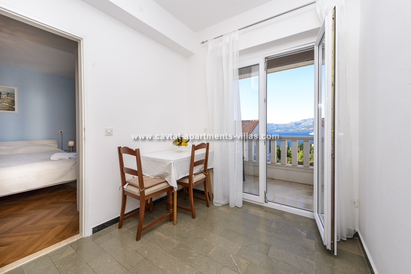 This one bedroom apartment is a part of a spacious and private villa for rent all year round, located on a small slope above the picturesque seaside town of Cavtat. It is a private, family-run guest house with a tradition of 25 years, built in a typical Dalmatian style and surrounded by relaxing Mediterranean vegetation. A wonderful old quarter is situated just a short walk away down the hill where all important facilities are such as restaurants, shops, beaches, banks, post etc.