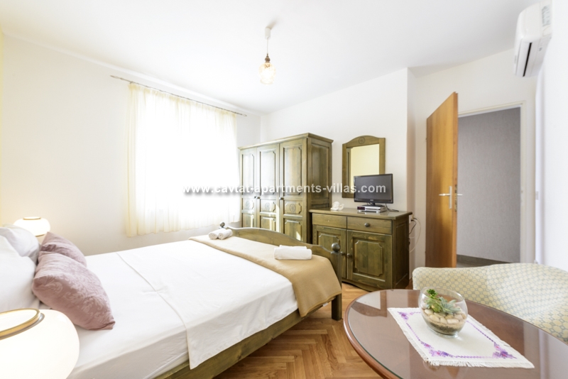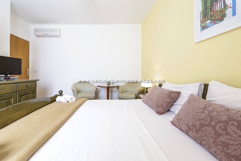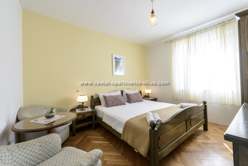 This apartment is a part of a spacious and private villa for rent all year round, located on a small slope above the picturesque seaside town of Cavtat. It is a family-run apartment house built in a typical Dalmatian style and surrounded by relaxing Mediterranean vegetation. A wonderful old quarter is situated just a short walk away down the hill where all important facilities are such as restaurants, shops, beaches, banks, post etc.