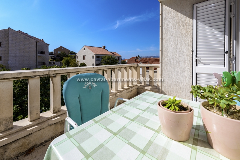 Private parking lot is just right in front of the villa. Apartment is located on the 2nd floor and consists of a separate bedroom with double bed, a shower room, a fully equipped brand-new kitchen/dining area and a large balcony. The apartment is tastefully decorated, air conditioned and equipped with sat TV. The apartment would suit couples or families with a child looking for a peaceful location to relax in a typical Dalmatian small town,also it is an excellent base to explore the surrounding areas. This apartment is located in the same house as apartments CT-A08  | CT-A09  | CT-A11  | CT-A38  |