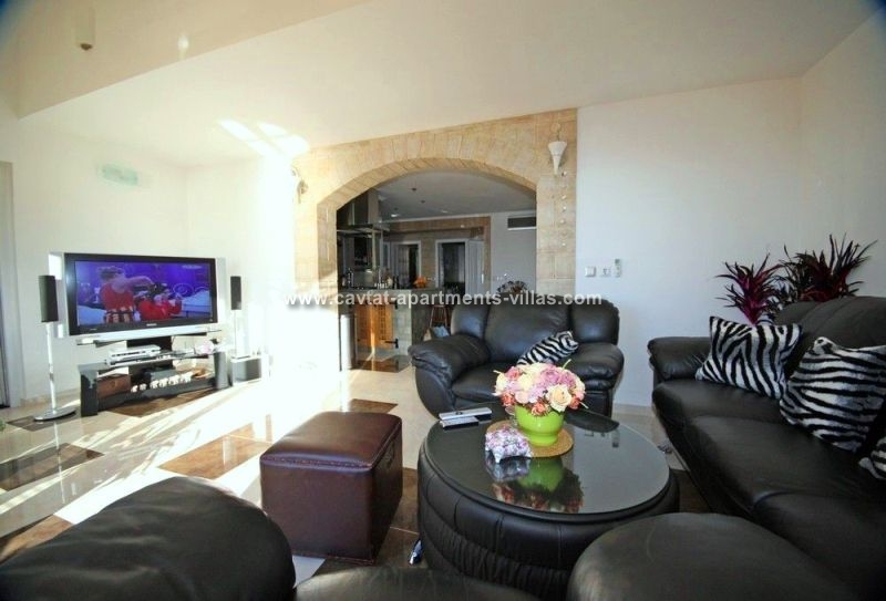This 3/4-bedroom apartment nicely decorated is situated on the first floor. The apartment is composed of three double bedrooms (each with a king size double bed), a separate room with access to a sea view balcony that can be used as extra sleeping place for two adults, a fully equipped kitchen/dining area and a partially separated living room with access to a sea view balcony/terrace with garden furniture and 2 shower rooms.