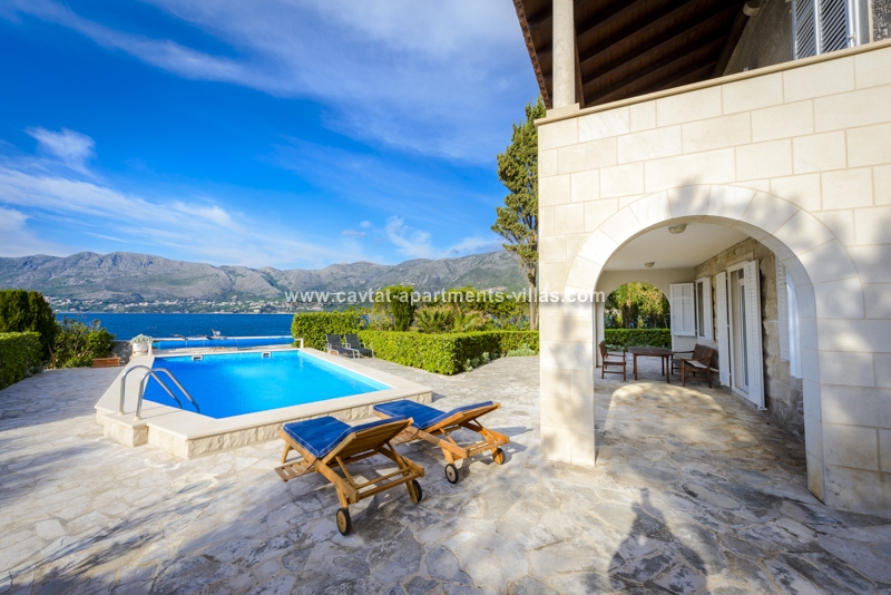 These apartments are a part of a family owned villa with a pool situated on a unique secluded part of Cavtat in the middle of the half island Rat, right next to one of the loveliest beach in Cavtat "Kamen mali" which you can reach from the property with ease. The villa is located right next to the sea and surrounded by the owners gardens. Do the villa is in a secluded area and only surrounded by sea and nature, the old town Cavtat is located only 5 minutes of walk from there via lovely mostly flat pedestrian street following the sea.