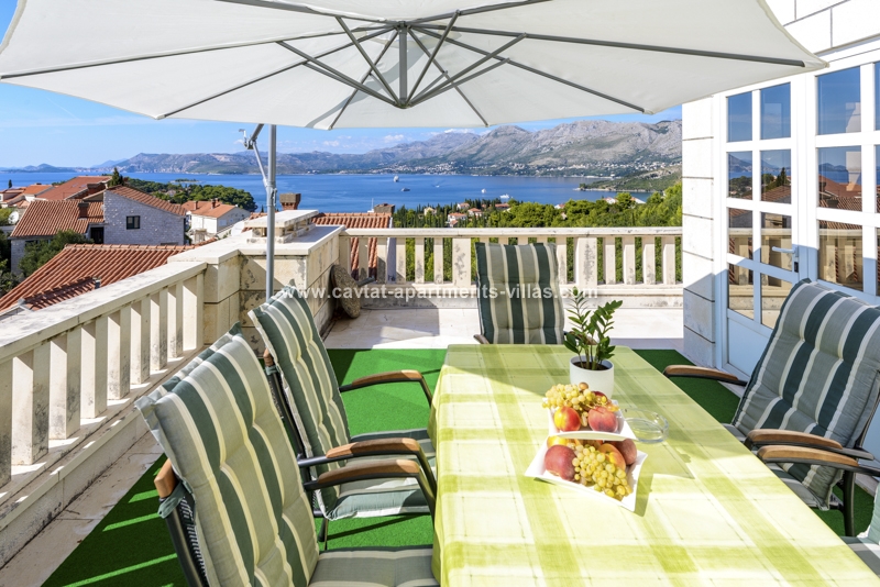 This apartment occupies the whole top floor of a spacious and private villa, located on a small slope above the picturesque seaside town of Cavtat. It is a private, family-run accommodation with a tradition of 25 years, built in a typical Dalmatian style and surrounded by relaxing Mediterranean vegetation.